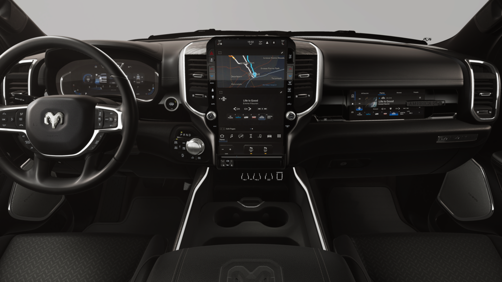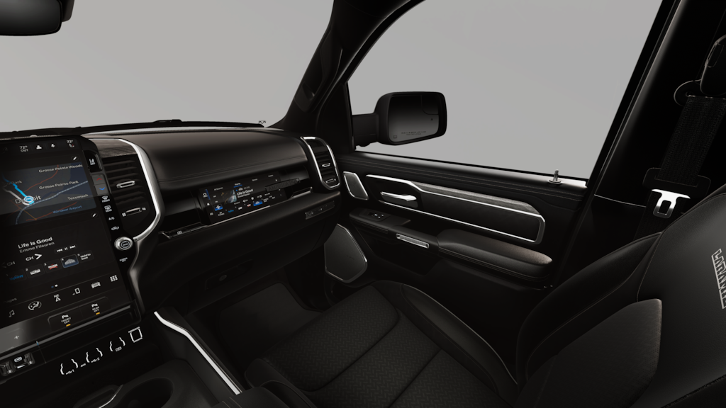 NIGHT EDITION Black Headlamp Bezels, Wheels: 22 x 9 Forged Aluminum, Tires: 285/45R22XL BSW All Season, Pirelli Brand Tires, Proximity Approach/Departure Lamps, Anti-Spin Differential Rear Axle, Accent Color Door Handles, Black Interior Accents, Body Color Front Bumper, Grille Surround 3 Black Texture 2 Black, Body Color Rear Bumper w/Step Pads, RAM Grille Badge - Black, Black Painted Exterior Mirrors Caps, Exterior Mirrors Approach Lamps, Accent Color Premium Power Mirrors, Sport Performance Hood, Black Exterior Truck Badging, Accent Color Tailgate Handle, Dual Exhaust w/Black Tips, Black Tail Lamp Bezels, LARAMIE LEVEL 2 EQUIPMENT GROUP Rain Sensitive Windshield Wipers, 14.4 Touchscreen Display, Front Passenger Interactive Display, Radio: Uconnect 5 Nav w/14.4 Display, harman/kardon® 19 Speaker Premium Sound, Cluster 12 TFT Color Display, Power Tailgate, DUAL-PANE PANORAMIC SUNROOF LED Dome/Reading Lamp, Dome Dual LED Reading Lamp, OFF ROAD GROUP Off Road Decals, Steering Gear Skid Plate, Falken Brand Tires, Raised Ride Height, Front Extra HD Shock Absorbers, Rear Extra HD Shock Absorbers, Full Size Spare Tire, Tow Hooks, E-Locker Rear Axle, Transfer Case Skid Plate, Fuel Tank Skid Plate, Selec-Speed Control, ENGINE: 5.7L V8 HEMI MDS VVT ETORQUE 48V Belt Starter Generator, Heavy Duty Engine Cooling, Passive Tuned Mass Damper, Delete Alternator, Passive Cold End Exhaust, 18 Aluminum Spare Wheel, TRANSMISSION: 8-SPEED AUTOMATIC (8HP75) (STD).