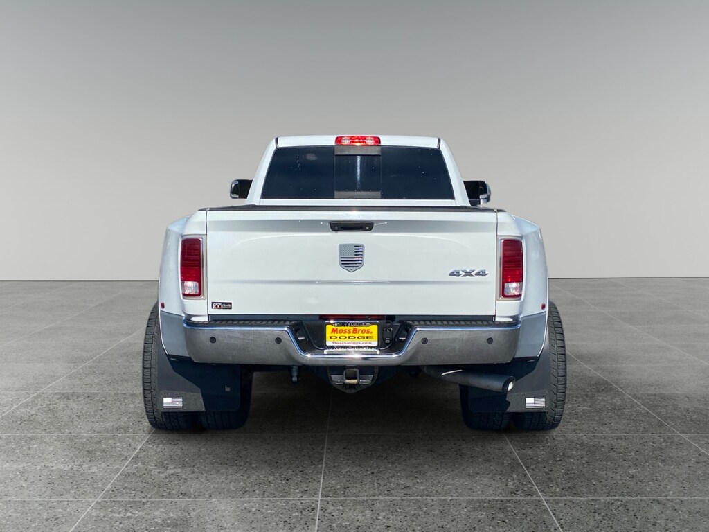 DUAL REAR WHEELS 17 x 6 aluminum wheels, 17 steel spare wheel, LT235/80R17E all-season BSW tires, 6,000 lb front axle w/hub extensions, box & rear fender clearance lamps, bright wheel skins, 14,000 lb GVWR, rear wheel spats (w/DF2 trans 300mm rear axle ring gear diameter) (w/DEG trans 11.50 dual wheel rear axle ring gear diameter), UCONNECT 8.4AN AM/FM stereo, &, 8.4 touch screen display, GPS antenna input, GPS navigation, HD Radio, media hub (SD/USB/aux input), rearview mirror w/microphone, remote SD card slot, roadside assistance & 911 calling, Uconnect Access Advantage, Uconnect Access via mobile, Uconnect voice command w/Bluetooth®, CONVENIENCE GROUP auto high beam headlamp control, rain sensitive windshield wipers, PARKSENSE REAR PARK ASSIST SYSTEM, REMOTE START SYSTEM, PWR ADJUSTABLE PEDALS W/MEMORY, 2FH LARAMIE CUSTOMER PREFERRED ORDER SELECTION PKG 6.7L I6 turbo-diesel engine, 6-speed auto trans, 3.42 axle ratio.